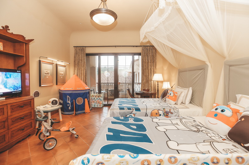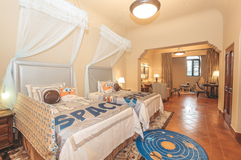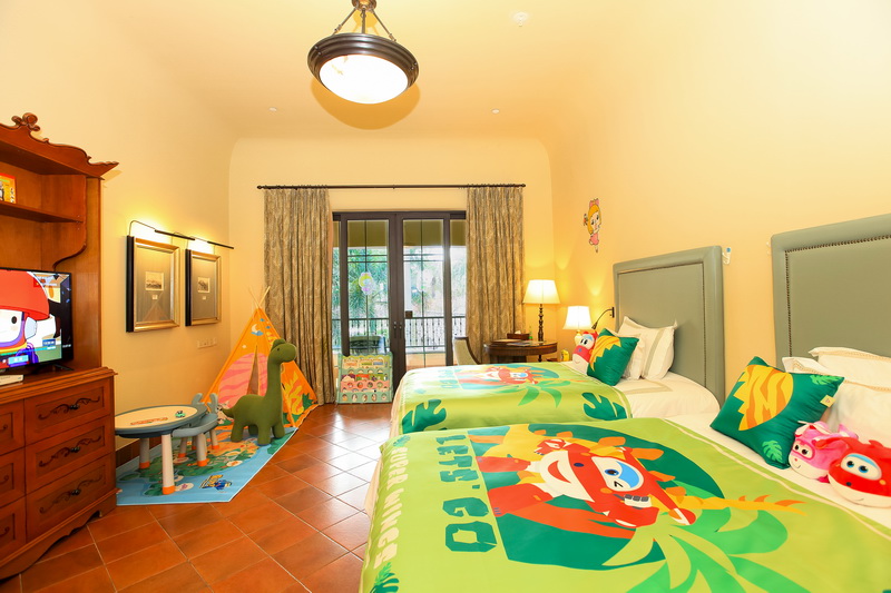 房内还贴心配置了超级飞侠主题小恐龙、拼图桌、故事书等儿童专属玩具,为孩子打造了一个欢乐的小天地,彻底释放孩子的玩乐天性。