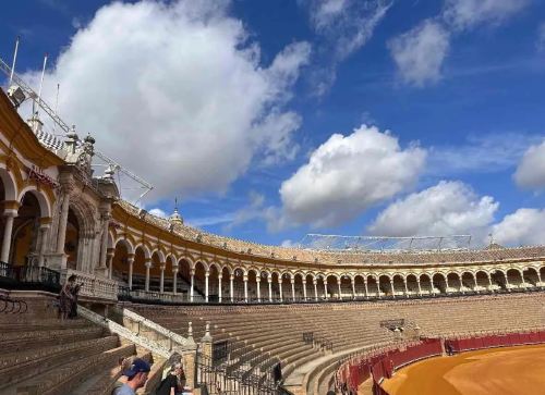 ▲ 塞维利亚斗牛场又名马埃斯多兰萨斗牛场,这座始建于18世纪,历经120年方才完工的斗牛场是西班牙是颇具代表性的斗牛场之一。 作为斗牛的发源地,塞维利亚也将这座斗牛场视为城市自身文化的传承。斗牛场建筑中较为醒目的是富丽堂皇的半圆形拱廊和王子门(Puerta del Principe),斗牛场对面有一座名为《雪茄厂女工卡门》的雕塑,是根据小说《卡门》中的经典形象创作。梅里美在作品中描述,卡门就是在这里被何塞杀害的。 来到塞维利亚,看一场斗牛表演是必不可少的行程,斗牛场目前可容纳12500名观众,是