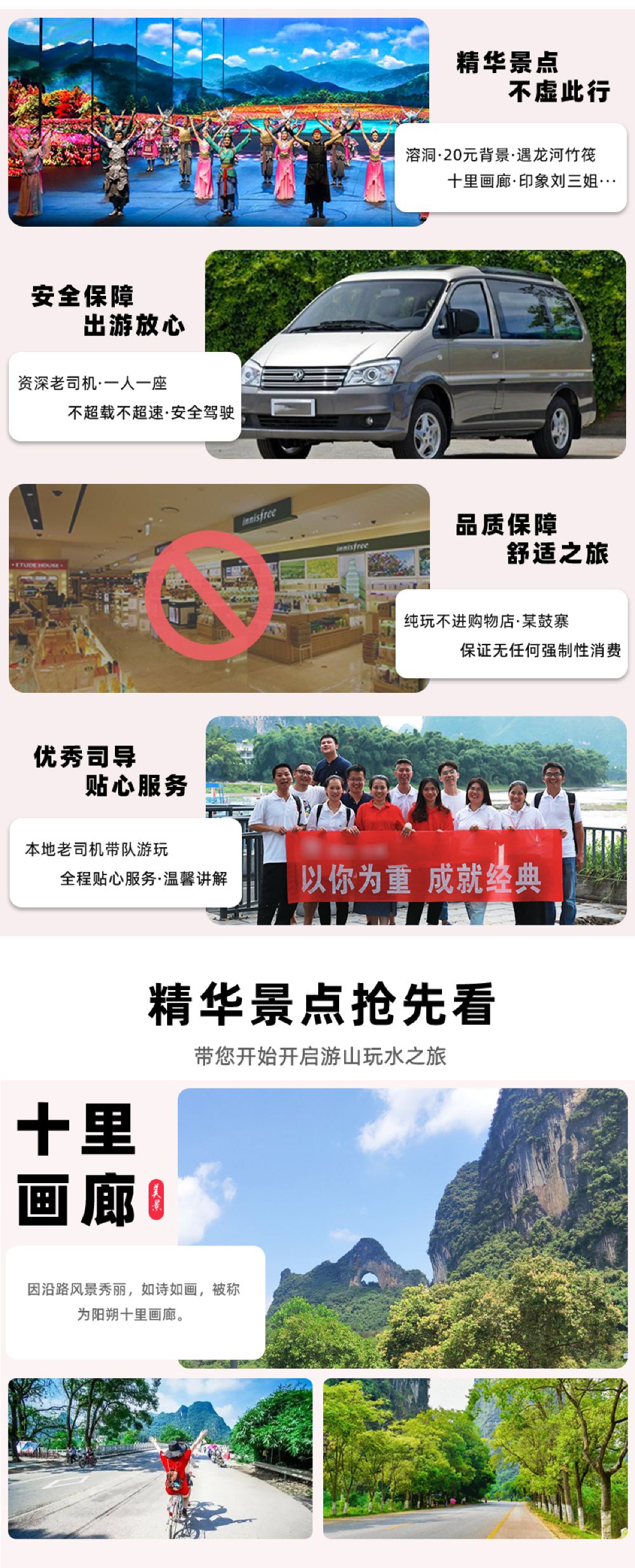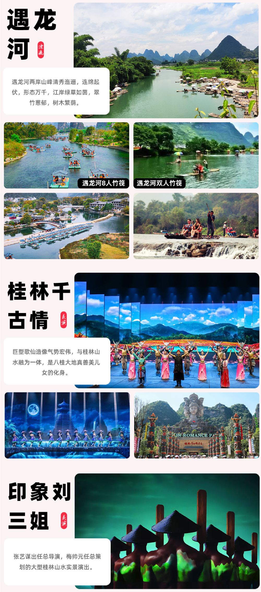 Z3线【遇龙河8人竹筏+漓江20元背景打卡+兴坪古镇+十里画廊+印象刘三姐或千古情(演出2选1)】