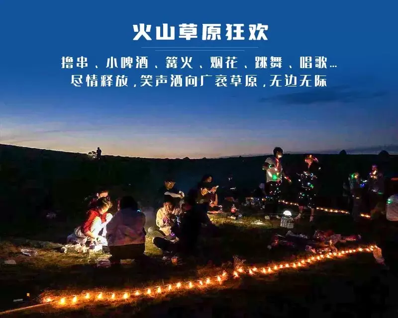 *本活动属户外徒步露营活动,火山草原暂不收门票,如收费门票费用自理;全览6个火山口需较强体力,量力而行;活动过程中赠送意外保险(以报名时提交身份证信息为准);费用包含以外的自主费用自理。