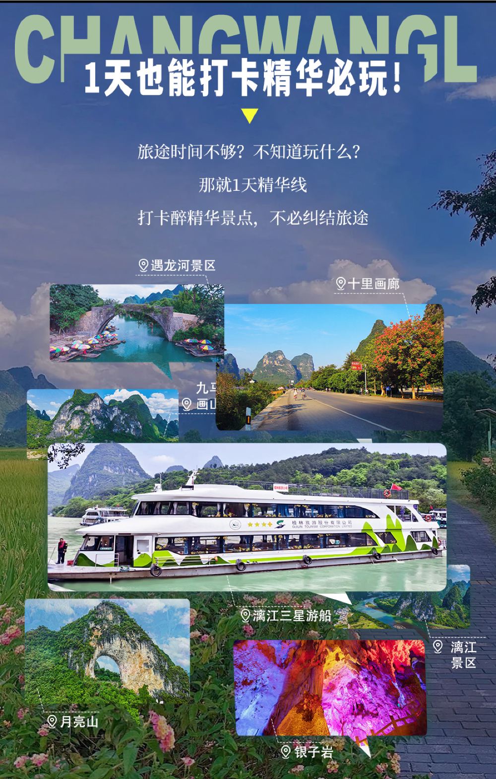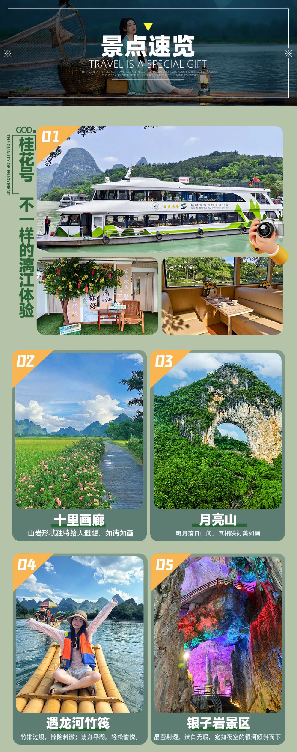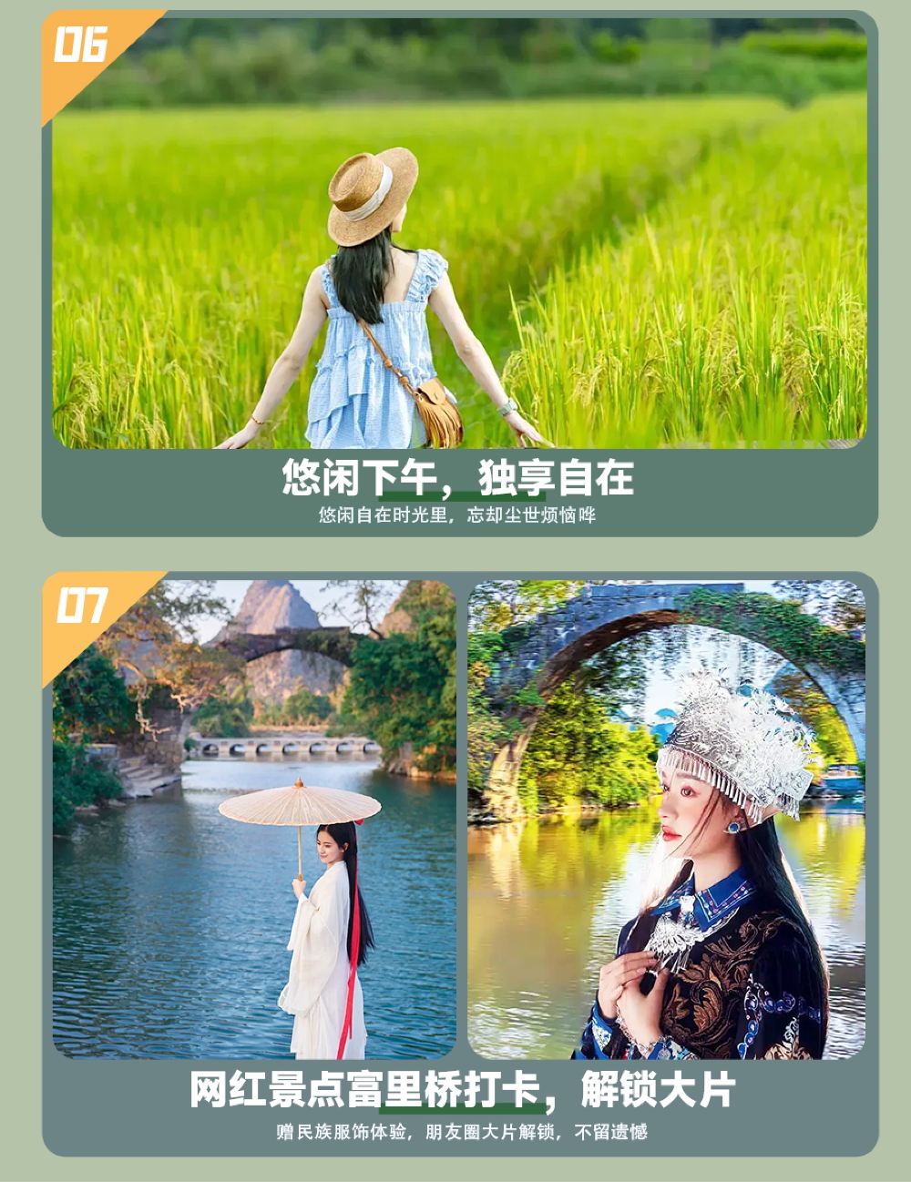 阳朔+漓江桂花号游船+遇龙河/银子岩一日【小团/私家团可选】【[全程漓江游船+多玩法可选]开启百里漓江新体验!打卡网红遇龙河/银子岩+阳朔小众打卡点(休闲田园)】