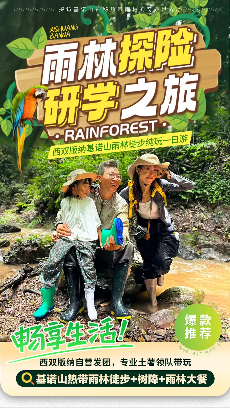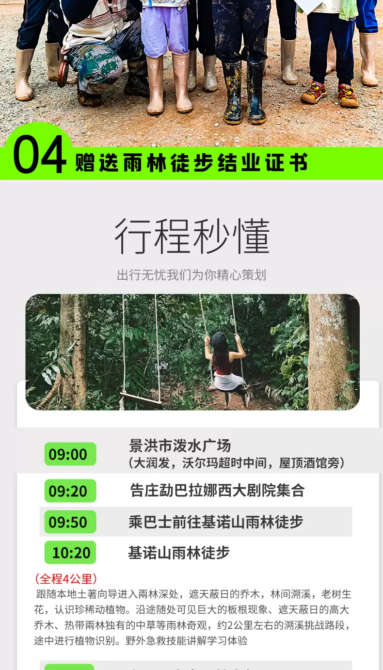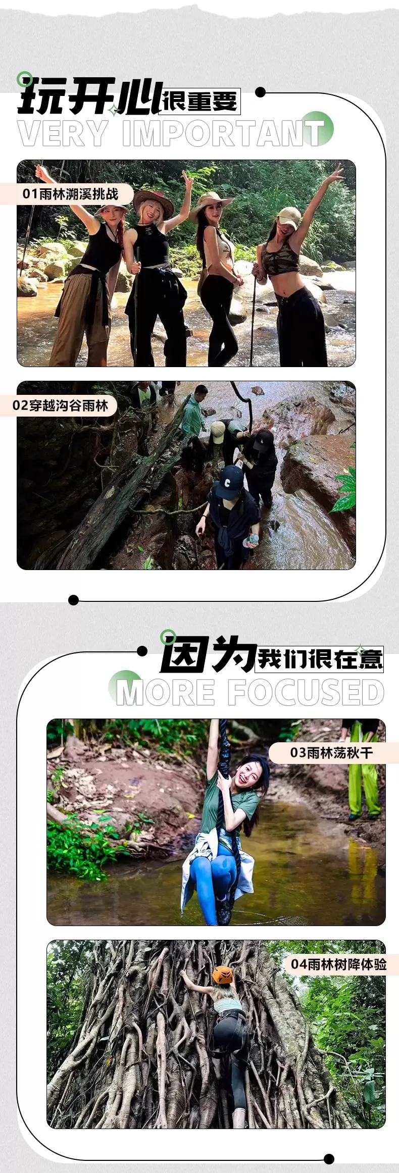基诺山雨林徒步一日游【拼小团·赠研学证书+向导+雨林餐+秋千+溯溪+树降+竹筏+射箭等一站打卡】