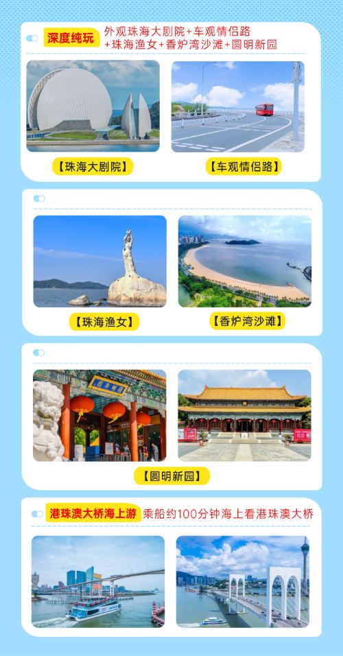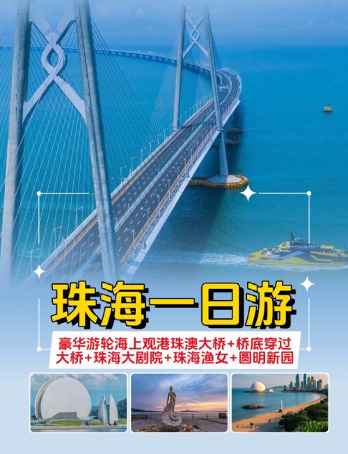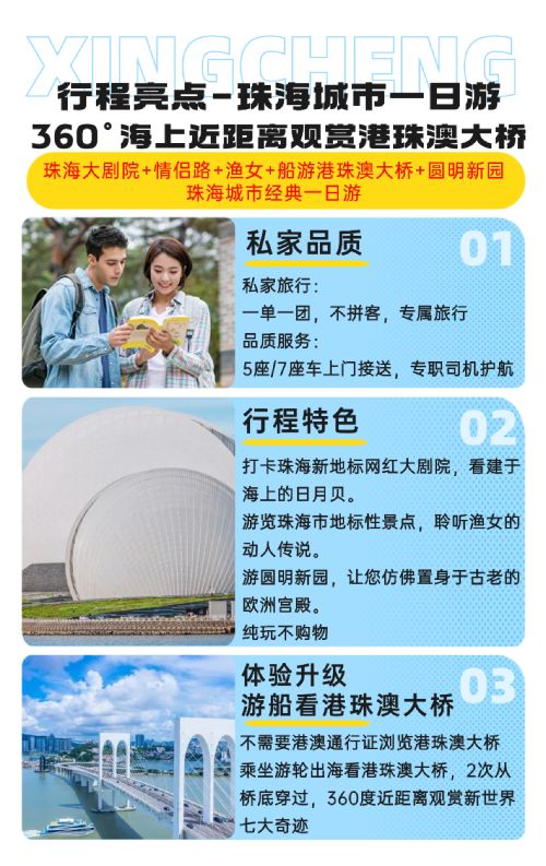珠海标志景点+海上观港珠澳大桥+园明新园一日|私家团上门接送【私家旅行:一单一团,不拼客,专属旅行; 品质服务:5座/7座车上门接送,专职司机护航】