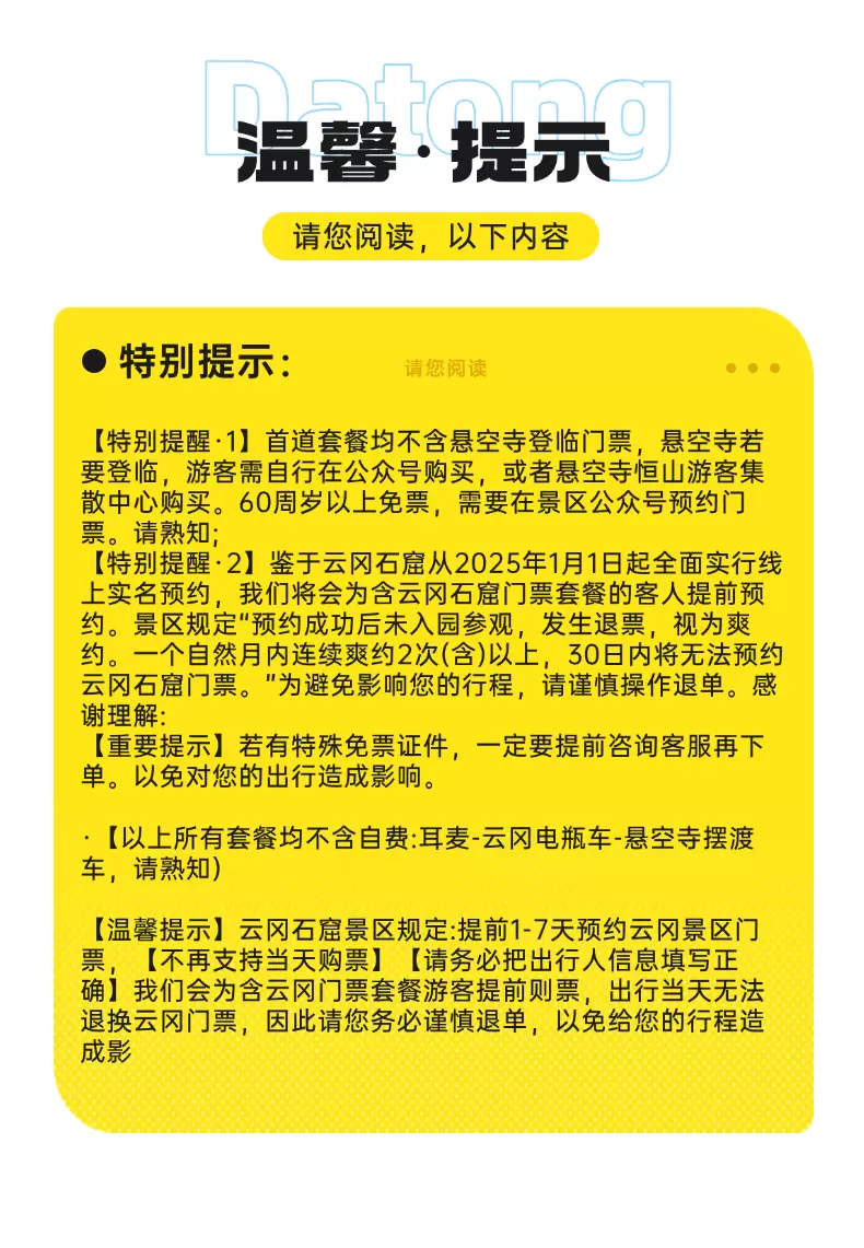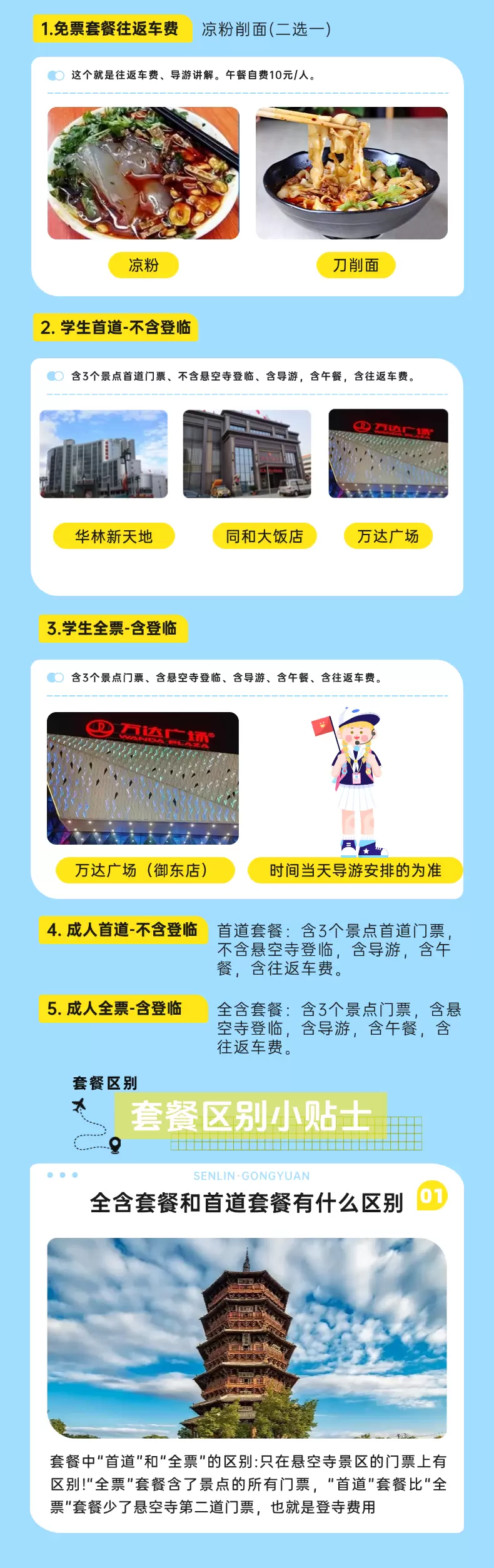 【注意】从2025年1月1日起,恒山、悬空寺需乘坐摆渡车到达景区内,此项目为自费必消。(自费20元/人)