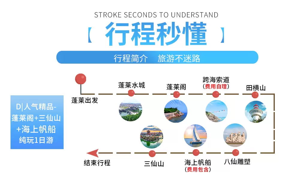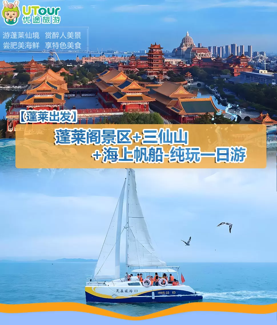 蓬莱阁+三仙山风景区+田横山文化公园一日游【蓬莱发 | 帆船出海(含)+八仙雕塑 | 亲子优选 | 阳光导游】
