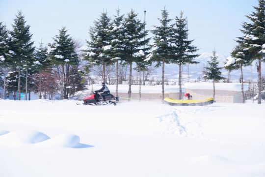 ▲ 位于北海道中心部的美呗市的“美呗雪地公园”是纯白雪和雄伟自然交织而成的冬季游乐天堂。在晴朗的冬季天空下,在北海道独特的粉雪上滑行,令人兴奋,放松心情。与朋友和家人一起冒着雪烟在雪原上奔跑的经历,一定会成为难忘的回忆。广阔的晴天雪地里,小朋友们可以自行驾驶着雪地摩托。洁白的雪和湛蓝的天空营造出明亮愉快的冬日氛围。(此项目需另付费)