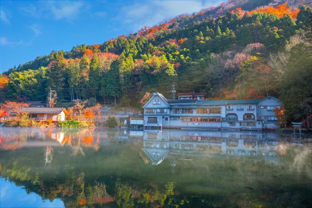 ▲ 被群山环绕的温泉小镇,拥有宁静氛围、特色小店、本地艺术与美丽的金鳞湖风光。