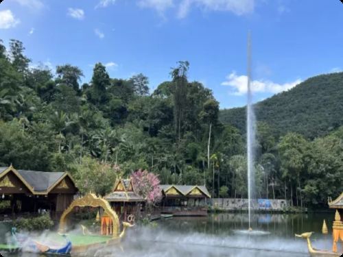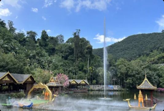 ▲ 西双版纳原始森林公园位于景洪市东部,澜沧江以北,是一片原始森林。公园内代步工具是游览车,主要景点有西双版纳孔雀山庄,当驯养员一声哨响,上百只孔雀越过波光粼粼的湖面,场面非常震撼。另外两站是爱伲山寨和民族风情演艺场,既可以观看民族歌舞表演,也可以参加小型泼水节,很有民族风情。