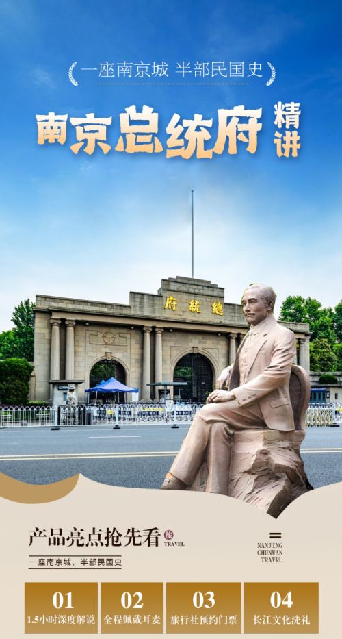 【含门票赠长江十二城】南京总统府含门票+90分钟含耳麦精讲【[优选讲师]精选讲师,带你破译总统府密码】