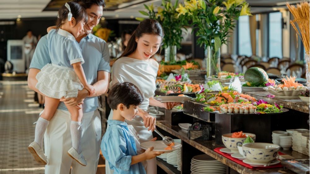 ▲ 与家人一起享用美味的自助餐,同时欣赏下龙湾的壮丽景色。