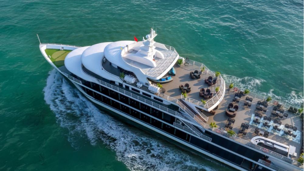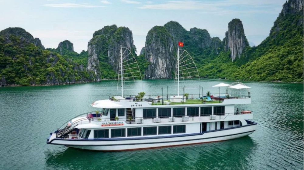 ▲ 乘坐SEA OC***US号,尽享下龙湾的壮丽风光。全景甲板是观光和休闲放松的理想之选。