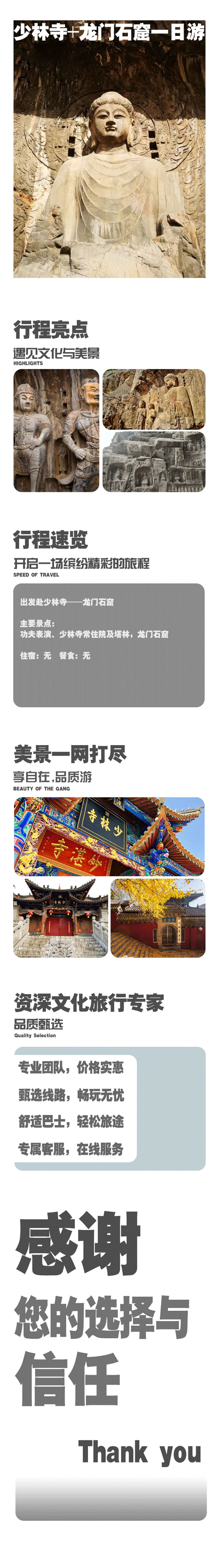 登封少林寺+龙门石窟一日游【天天发班,精品导游讲解】【产品特色: 包含河南两家首批5A级精华龙头景区少林寺和龙门石窟,游厚重河南不可错过的经典行程!】