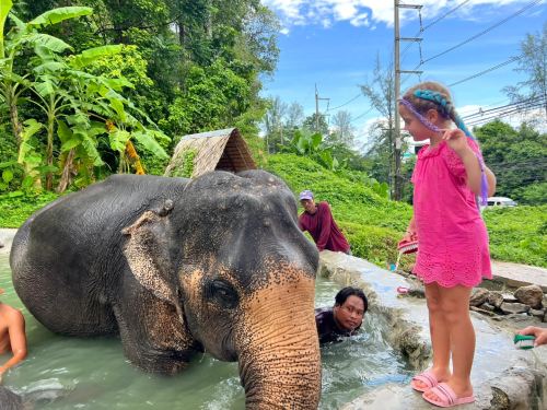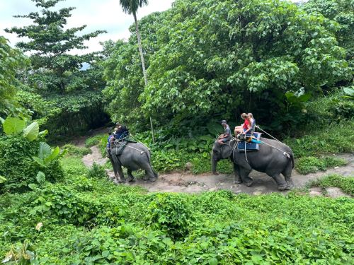 - 骑大象(15 分钟):我们选的大象温顺,坐安全座椅,慢慢穿过橡胶林和稻田,向导会讲大象的习性,能摸大象的耳朵,很放松;