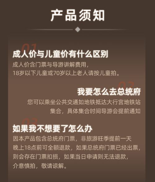 另总统府60天以内只能参观1次,下单时请确保60天内无入园记录及购买记录,请知晓。入园当天需本人有效身份证。