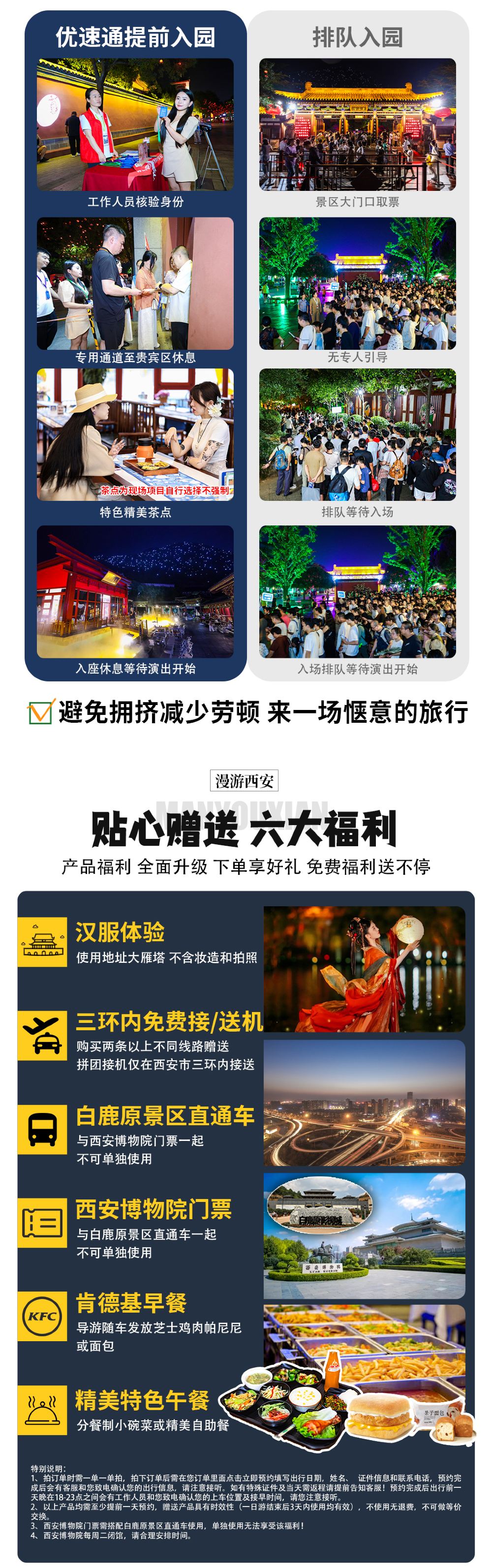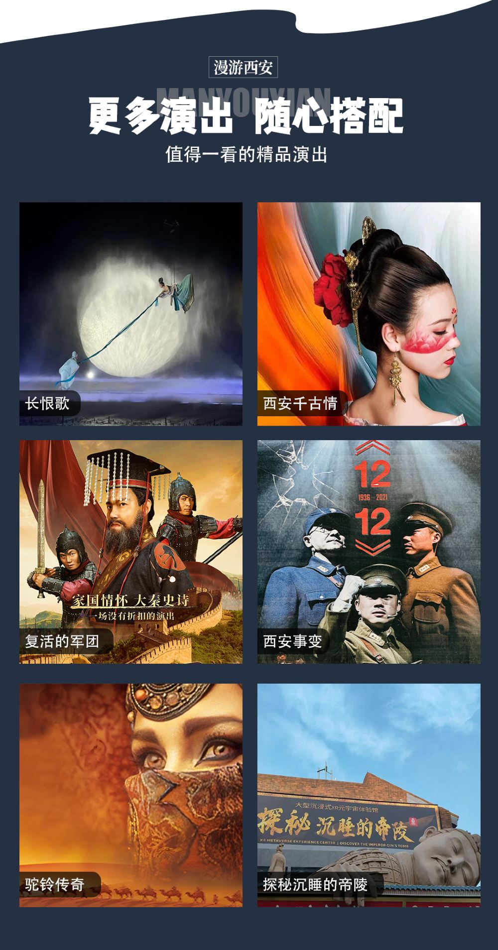 1.《套餐说明》长恨歌套餐1.3米以上购买儿童选项,1.3米以下购买婴儿选项如年龄超过4岁无法选择婴儿选项请联系在线客服处理,婴儿选项不含任何票。