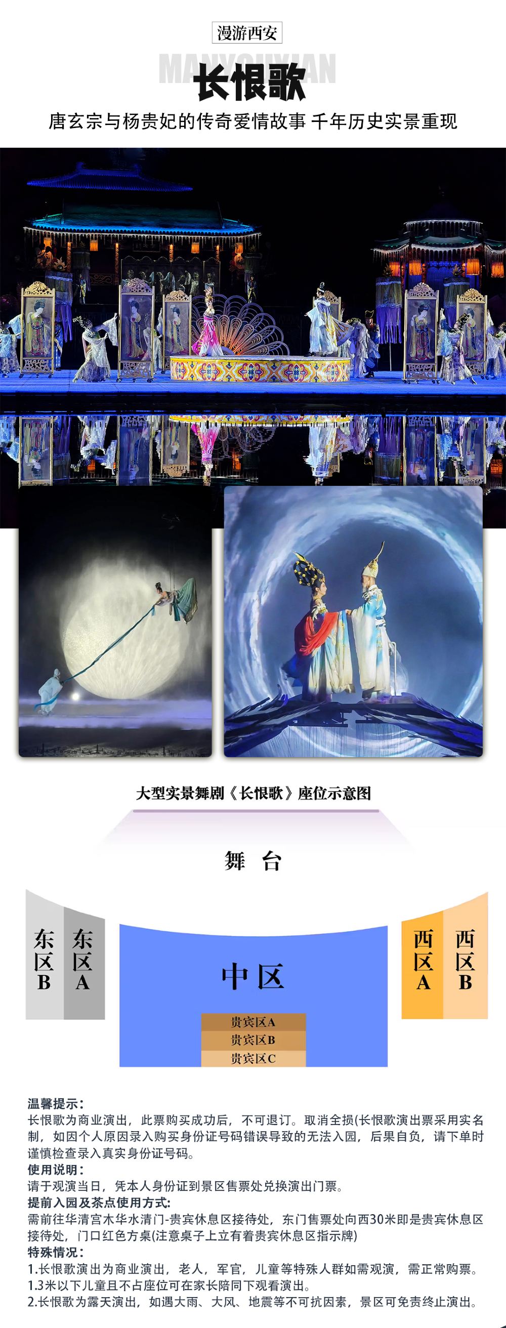 3.《优惠政策》长恨歌为商业演出,购买成功后,不可退订!1.3米以下儿童免票,其他人群均无优惠政策,敬请谅解!