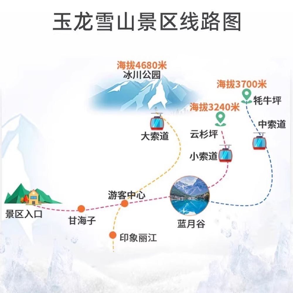 ▲ 玉龙雪山有三座山,三索道对应不同的山