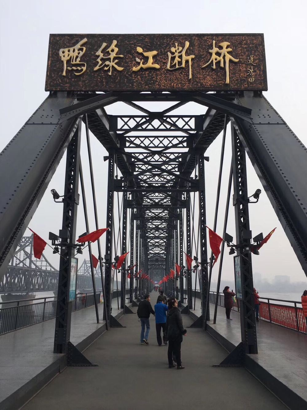 ▲ 鸭绿江断桥位于中国辽宁省丹东市振兴区江岸路鸭绿江畔,是原鸭绿江大桥被炸毁后的残余部分,为抗美援朝战争遗迹景观