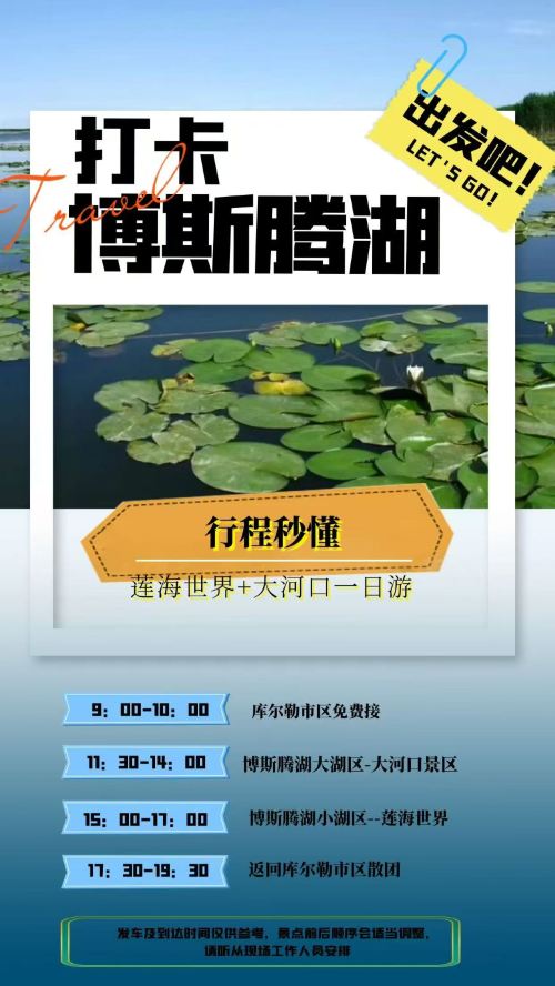 【纯玩团】库尔勒起止博斯腾湖莲海世界+大河口一日游【1、[品质保障]景区游玩时间充足,无套路 5月1人、10月1日 市区免费接送如:火车站,开发区都可】
