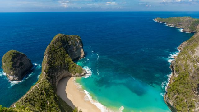 ▲ 站在克林金海滩的悬崖顶上,惊叹于巴厘岛著名的霸王龙形状的海岸线。