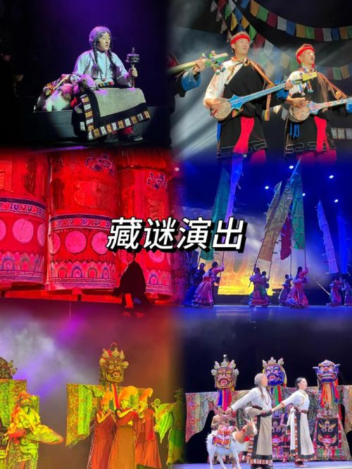 九寨沟藏谜大剧院《藏谜》中的所有歌舞均源自对藏族原生态音乐、舞蹈、器乐、服装、道具的精心收集和整理。从神秘的宗教音乐到绚丽的服饰表演,从古老的唐卡艺术到动人的藏式唱腔,每一场演出都是一次视觉与听觉的盛宴。弹唱、说唱、拉伊、牧歌到踢踏舞、弦子舞、牦牛舞、锅庄,再配以马头琴、曼陀铃、弦胡、达玛鼓等民族乐器,每一场演出都是对藏族文化的一次深情致敬。