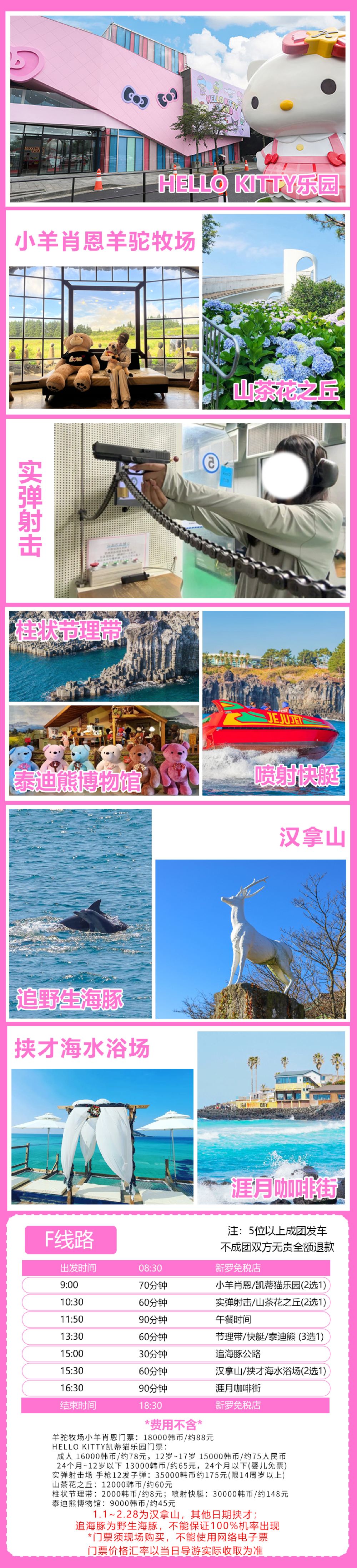 济州岛西南纯玩【景点自由选+免费追海豚】F线拼车一日游【济州岛一日游网红精华景点:西南线 ◆汉拿山-小羊/凯蒂猫-实弹/山茶花-柱状/快艇/泰迪熊-追海豚】