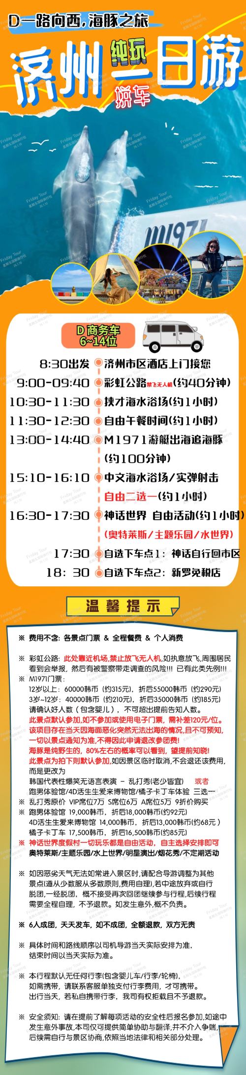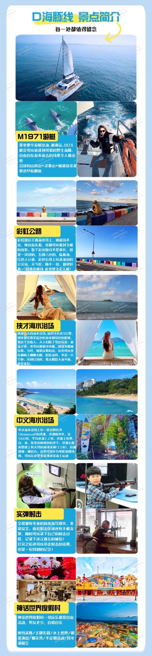 韩国济州市西线一日游【游艇追海豚√挟才休止符√实弹射击√】【D海豚线[ 彩虹公路+挟才海水浴场+M1971豪华游艇追海豚+中文海水浴场/实弹射击+神话世界 ]】