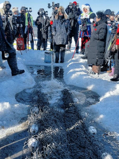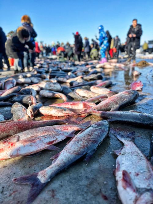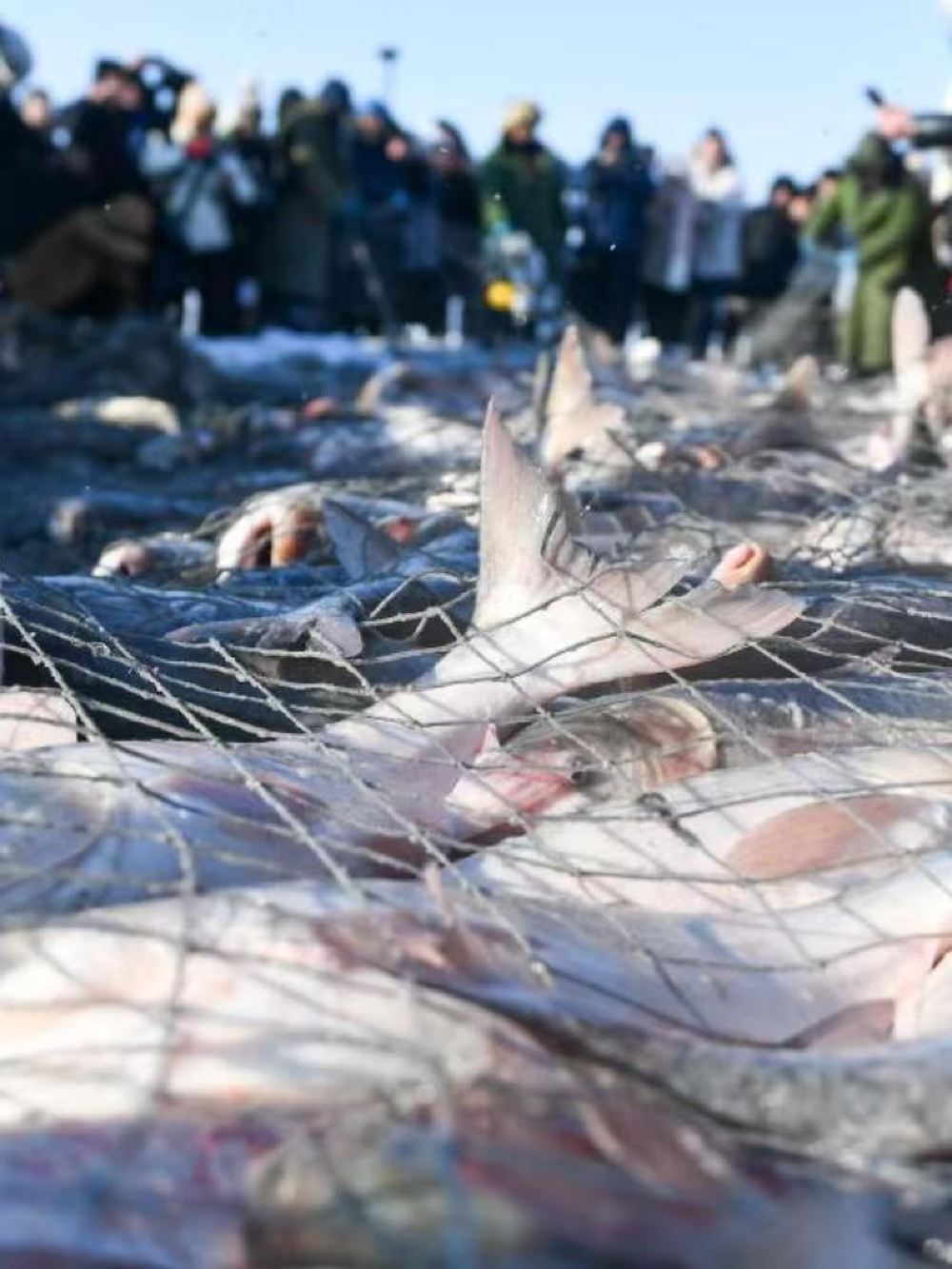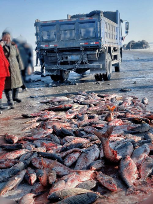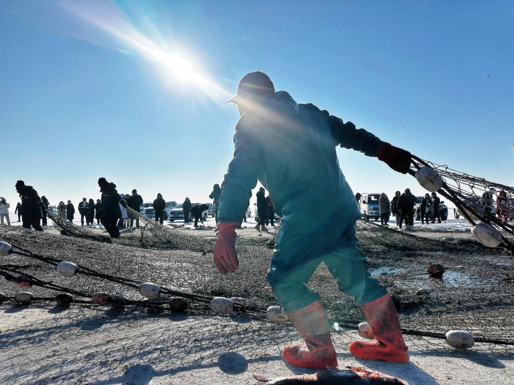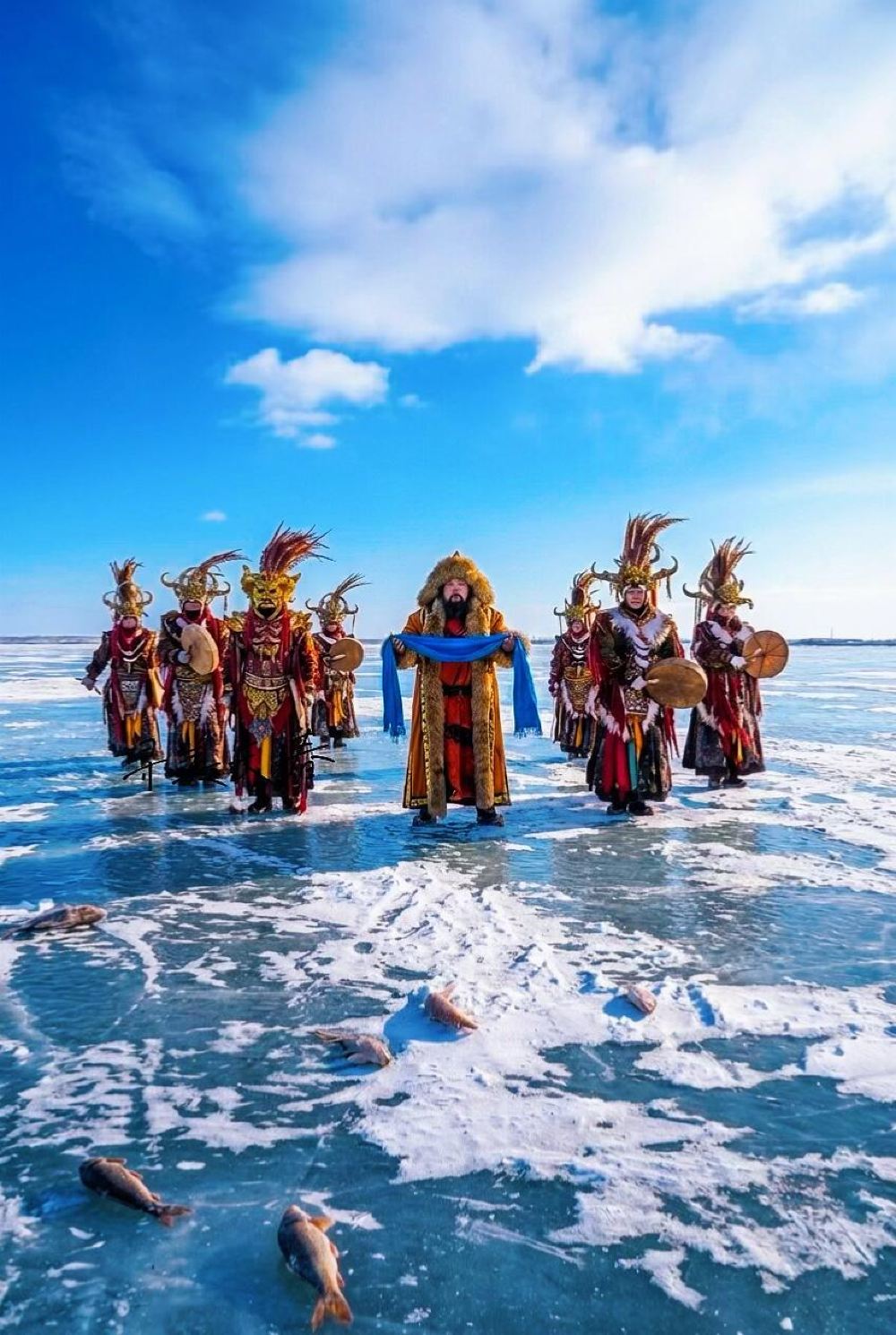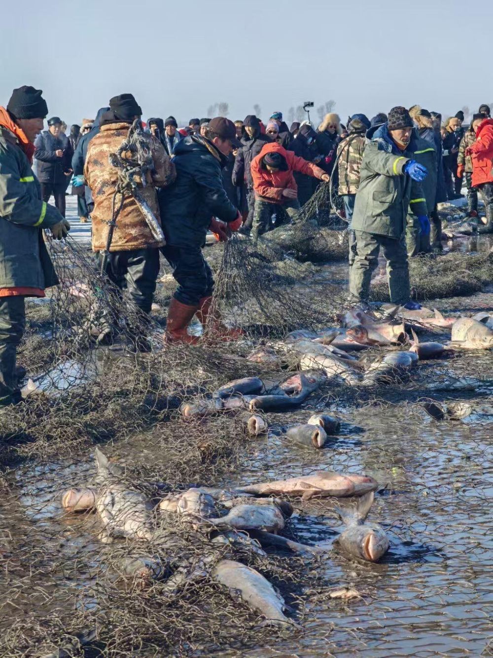 ▲ “塞北圣湖,昔日帝王猎巡地;关东新府,今朝生态鱼米乡”。查干湖景区自然资源十分丰富,盛产鲤鱼、鲢鱼、鲫鱼等15科68种鱼类,年产鲜鱼5000多吨。