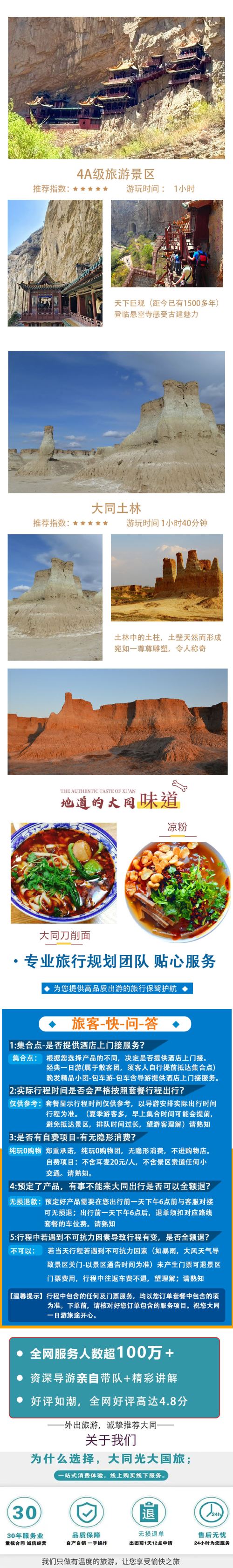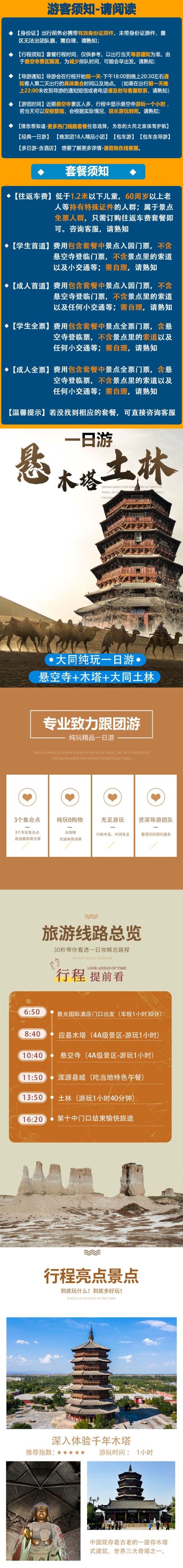 套餐B: 含3大景点【入园门票】+午餐+全程260多公里车费+导游服务+保险,不含悬空寺登临门票: 【土林属于自然景观景点--无导游陪同自由活动】