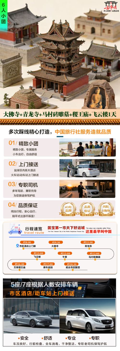 【小团】大佛寺+青龙寺+马村砖雕墓+稷王庙+飞云楼一日游【精致小团,灵活自由,司导护航一路舒心。】