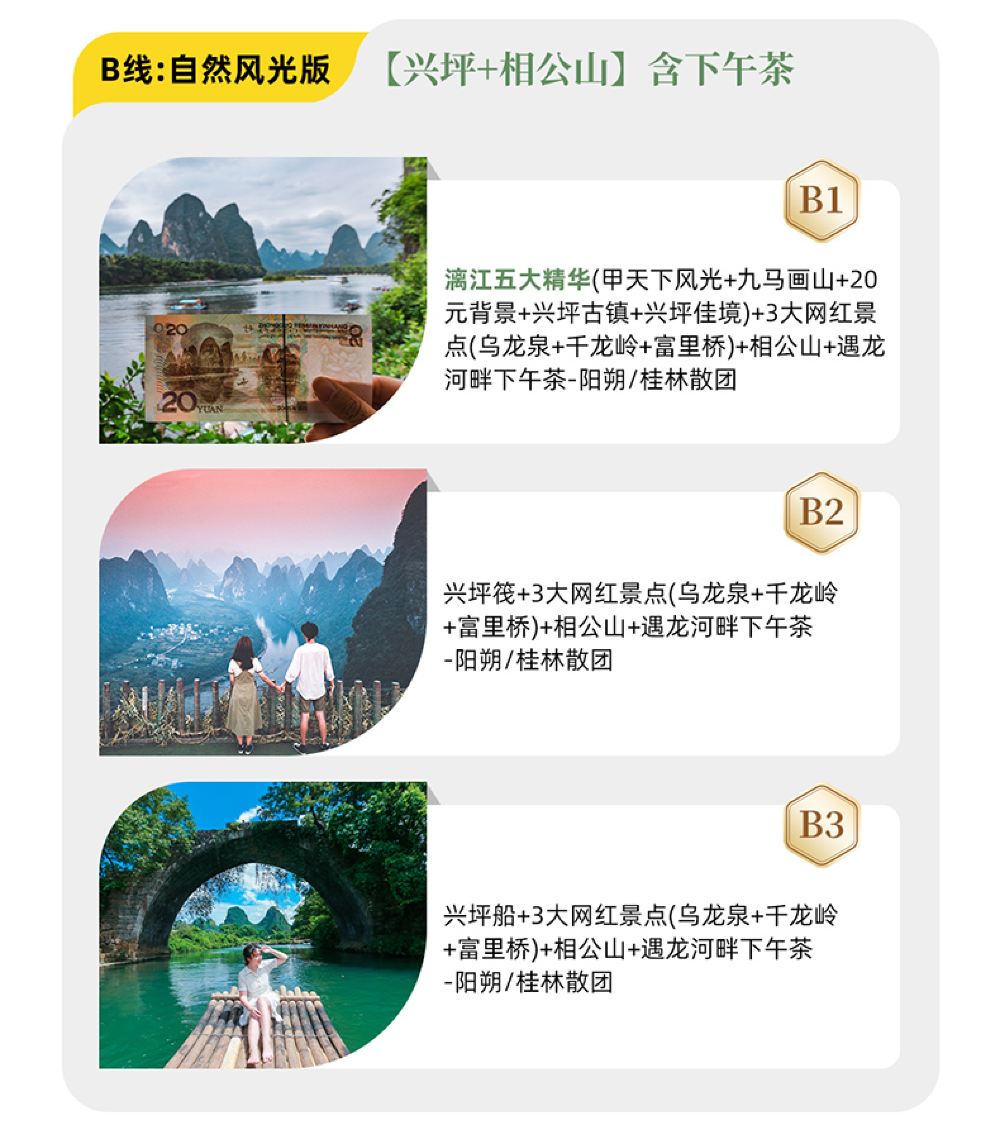 桂林+阳朔一日游【2-8人团漓江游船竹筏+20背景&相公山】【[2-8人小团轻奢纯玩]赏景漂流双体验,挚友亲子纵情畅玩!桂林山水精髓的所在,让您不虚此行!】