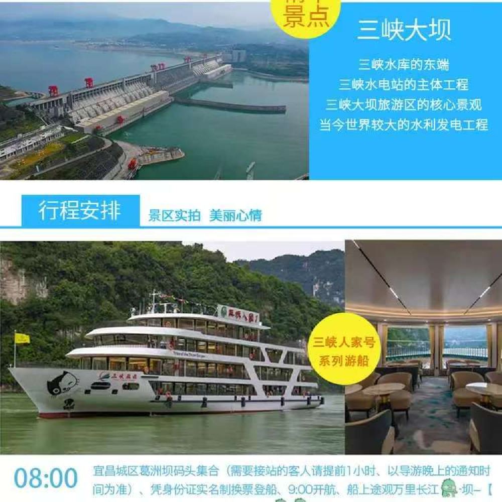 【全景游】船进三峡人家+西陵峡观光游船+三峡大坝一日游【[纯玩享受]万人出游好评连连,本公司游船自发团全程纯玩,如有进店承诺赔偿1000元:】