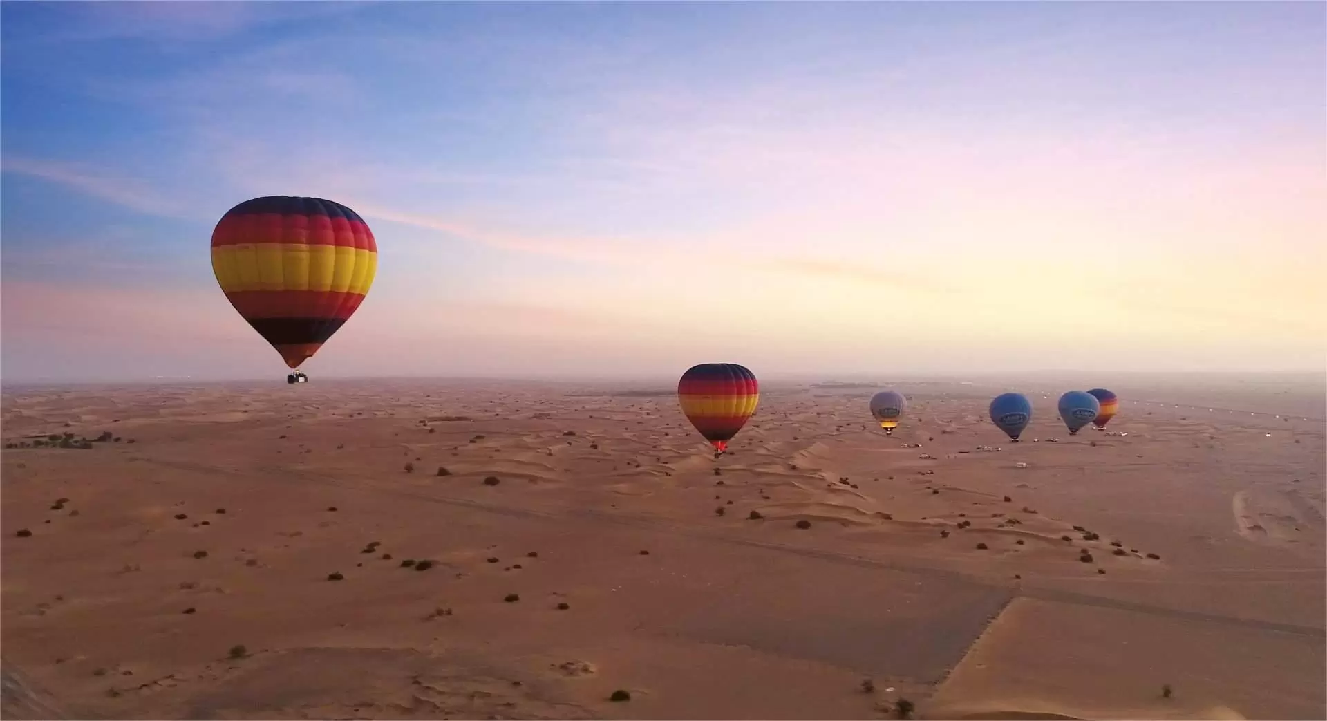 迪拜热气球体验一日游【迪拜热气球飞行体验门票,多套餐可选,乘坐热气球飞越沙漠,以前所未有的方式体验迪拜】