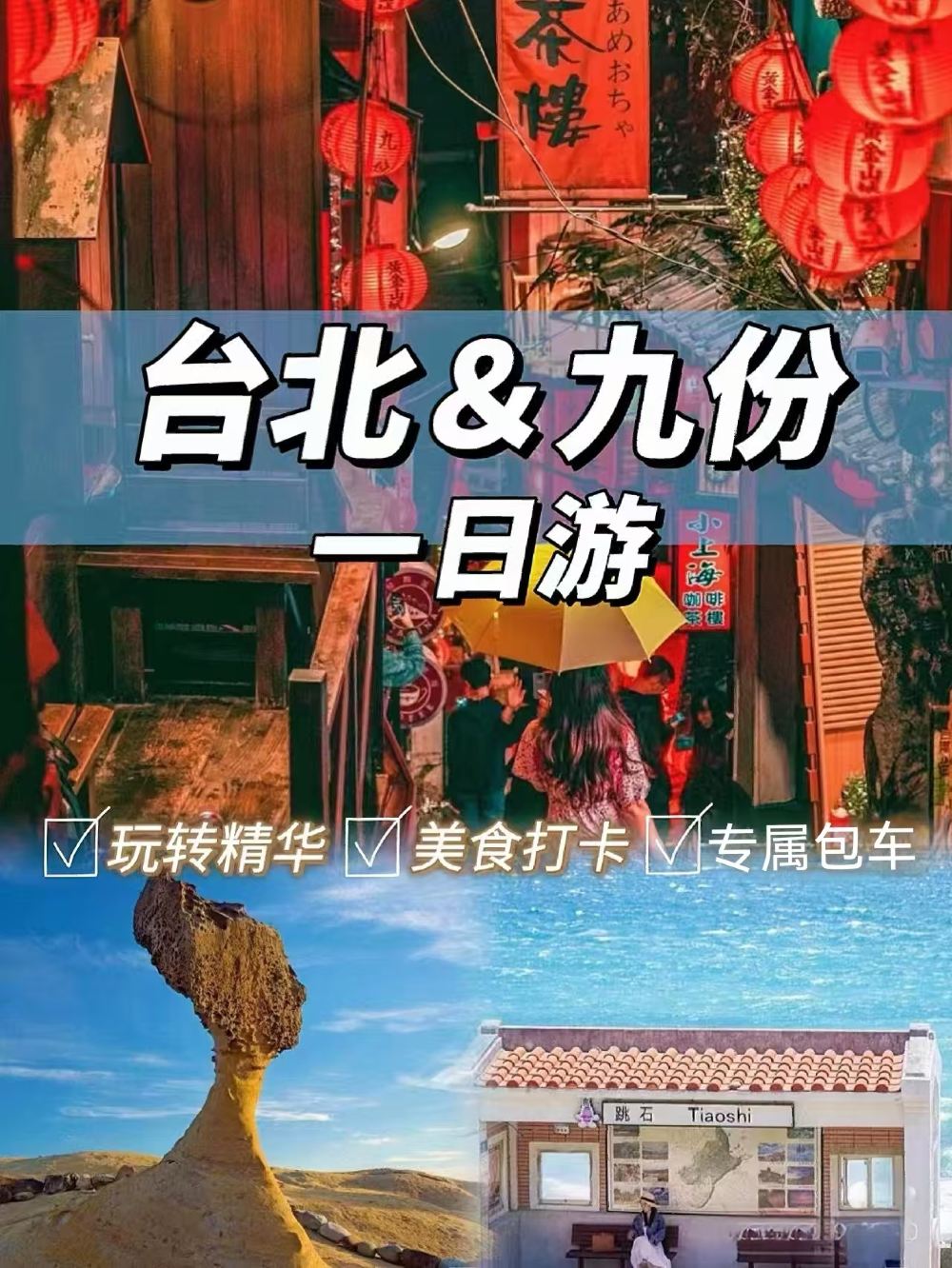 台湾野柳地质公园+阴阳海+九份老街一日|台北出发九份/十份&【行程可调|全境路线|均可选定|一单一团|独立用车和享私人空间,爱自由行,不喜欢跟团的朋友。】