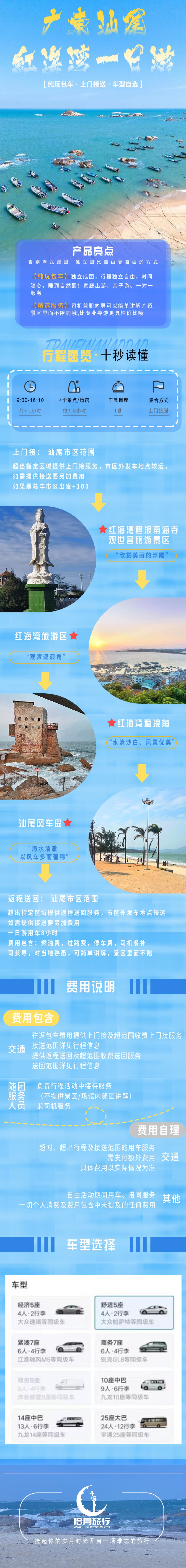 线路速览:酒店出发--海上公路--风车岛--施公寮海滩--海上古堡--红海湾风景区--海边咖啡街--后澳玻璃海--返程