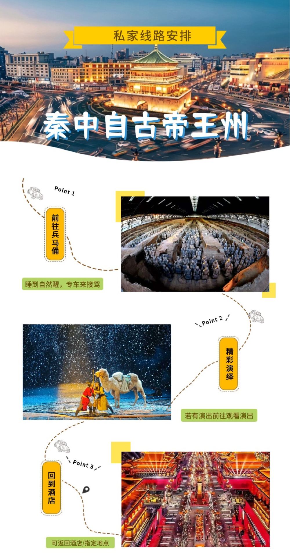 多条线路套餐可选,此产品为私家团,一家一车,私享资深大咖讲解员,景区内全程陪同,为您专业生动的解说兵马俑的千人千面以及背后千年历史故事!