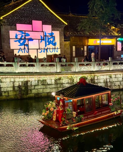 ▲ 走进安顺古城历史文化街区,一条石板路延伸至巷子深处,两侧木质结构的古朴房屋林立,阳光透过古瓦照进街头巷道,石板路上人来人往,别有一番悠悠韵致。