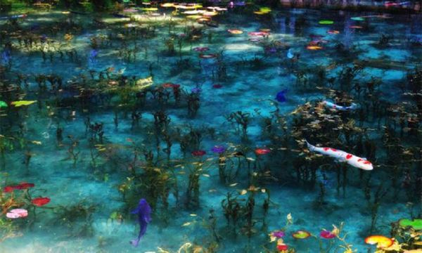 ▲ 池塘的水面上漂浮着睡莲,水下有色彩斑斓的锦鲤游弋,周围的绿树和花卉倒映在清澈的水面上,形成了一幅动人的画面。这种景象与莫奈在其《睡莲》系列中所描绘的景色有着异曲同工之妙,让人仿佛置身于莫奈的画作之中。