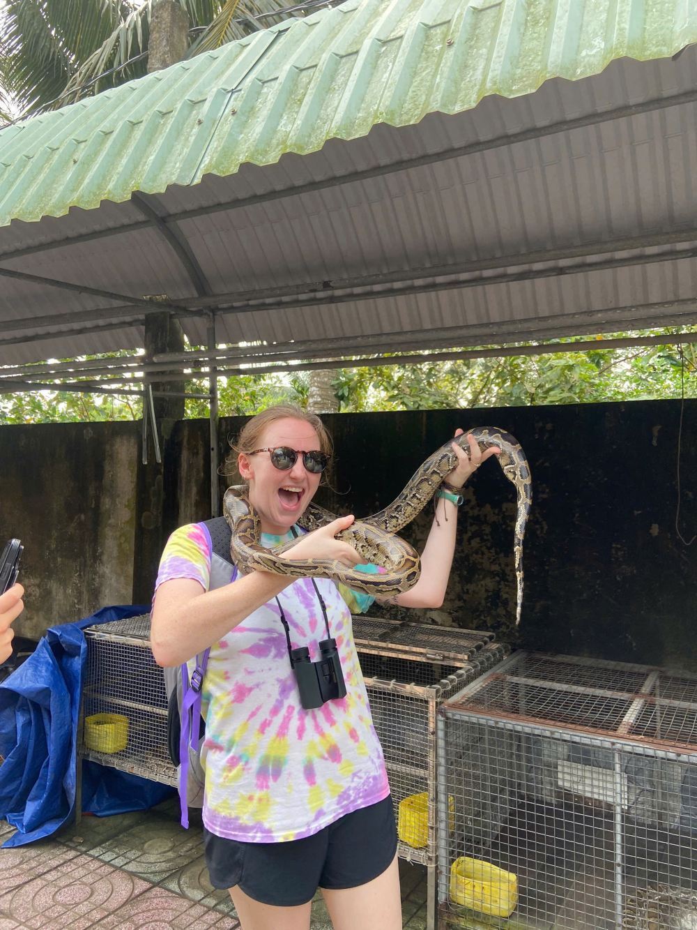 ▲ 当地居民还养有巨蟒供游客参观,喜欢冒险的游客可以与巨蟒合影留念。