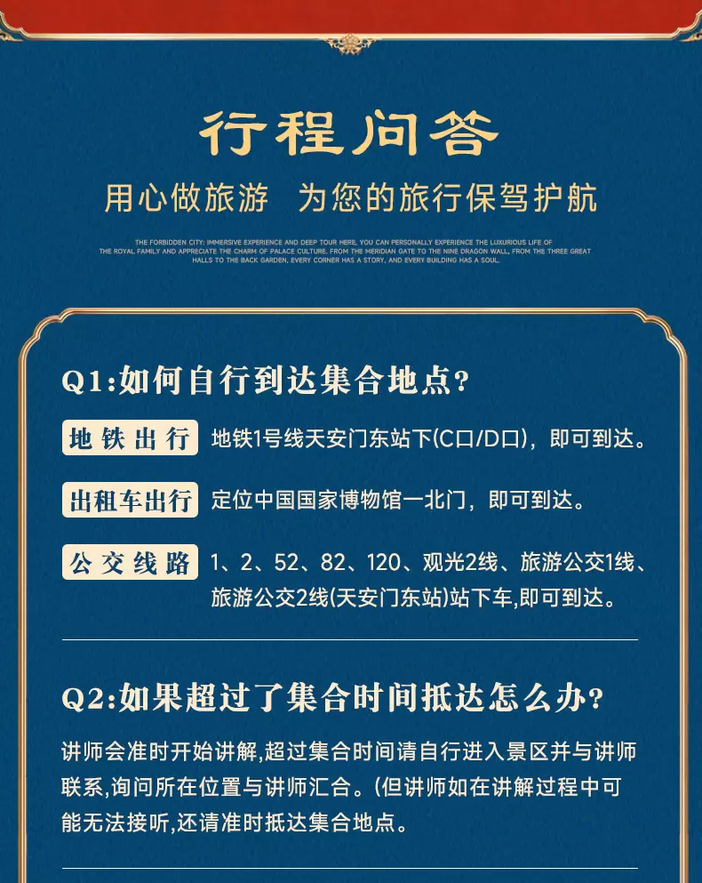 一:所有套餐都包含入馆参观,节假日期间位置紧张,总体成功率在百分之90以上,会有抢不到票的可能,没能抢到票的景点商家会无损退款,下单后请在确定出票成功以后再做好行程计划,以免延误行程。二:含人工讲解的景点,请按照导游的通知集合时间以及集合地点自行前往集合入馆,不含讲解的套餐自行刷身份证入馆参观,所有套餐入馆都需要携带好身份证,没有身份证的需携带好户口本。