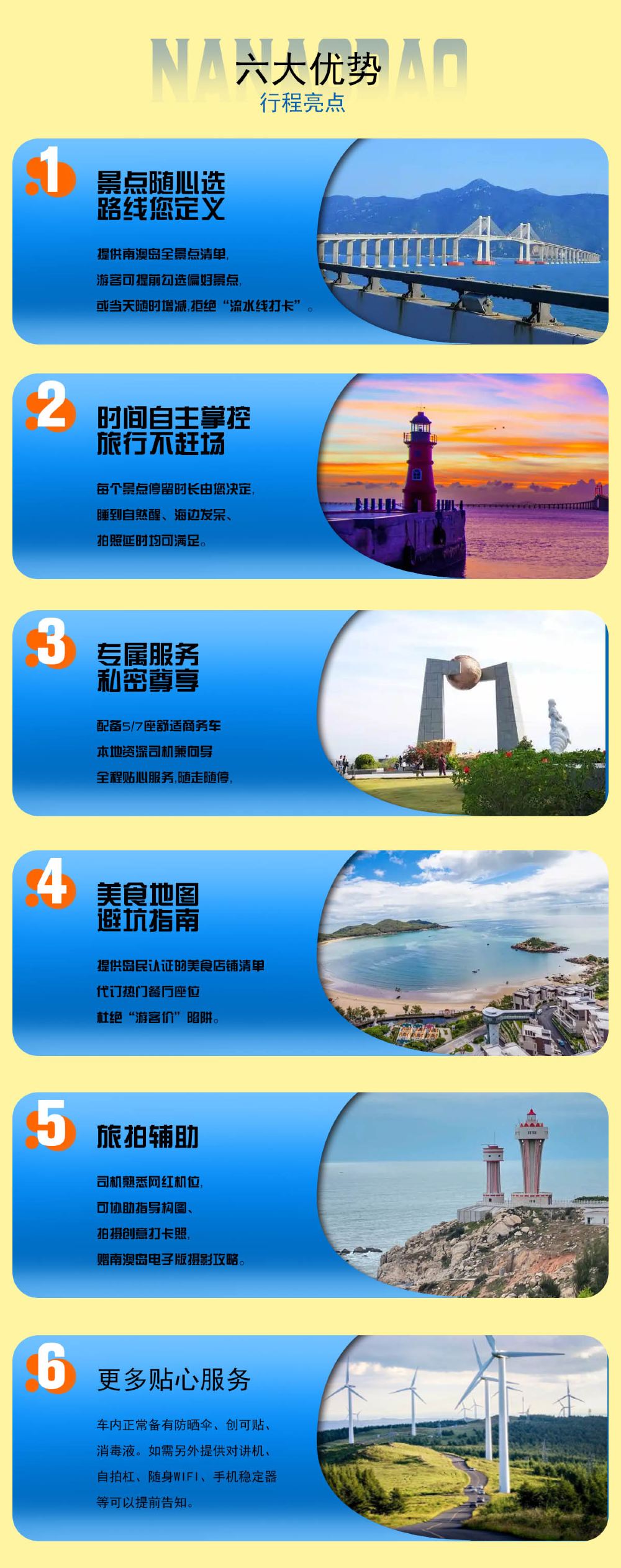 3、路线并非完全固定路线(沿途方便停车的景点也可以停,不喜欢的景点也可以不下车,不走回头路,南澳岛比较大,回头路可能几十公里)
