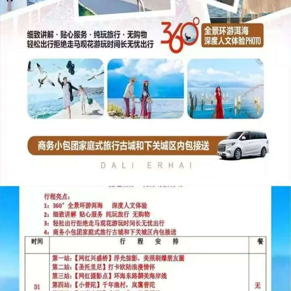 【服务时间】环洱海包车服务时间为早9-晚6,经济型5座超时费是50/小时;几点出发不限制,都可以商量着来,参考行程区域内9小时用车服务,不会故意拖延时间赚超时费,请您放心!
