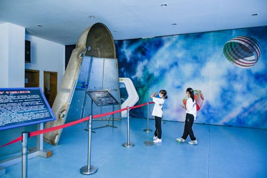 【奔月楼】区域陈列有大量航天图片文字资料、航天飞行回收实体文物、系列卫星和火箭模型,全面展示中国航天发展历程和取得的辉煌成就。