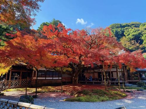 ▲ 枝垂樱:寺内拥有树龄超过300年的巨型枝垂樱,其枝条如瀑布般垂落,覆盖整个庭院,视觉冲击力极强。 2. 静谧氛围:相较于都市公园,此处游客较少,环境清幽,充满禅意,适合静心欣赏和拍摄人像。 3. 复合红叶:寺内同时有大量枫树,若在早春稍晚时节,可见“樱枫同框”的稀有景致。