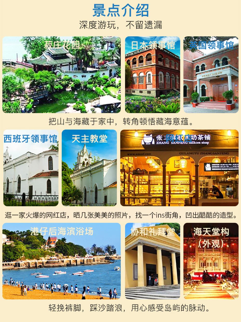 厦门鼓浪屿+集美学村+最美转角+港仔后沙滩一日活动老别墅下午茶【[经典线]看一座私人花园孤本,多彩的小资情调的“钢琴岛”鼓浪屿】