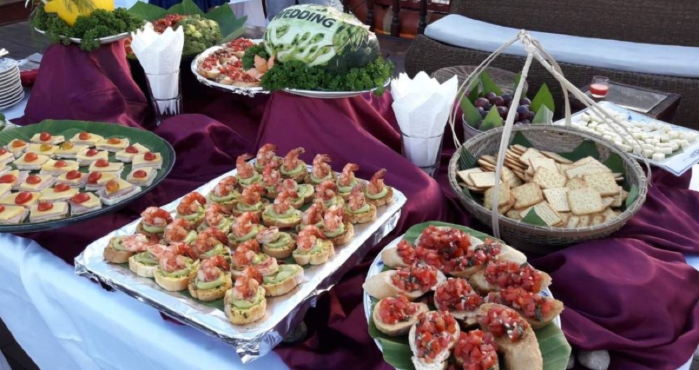 在日光浴平台上户外享用 5 道菜的美味海鲜,度过一个热带夜晚