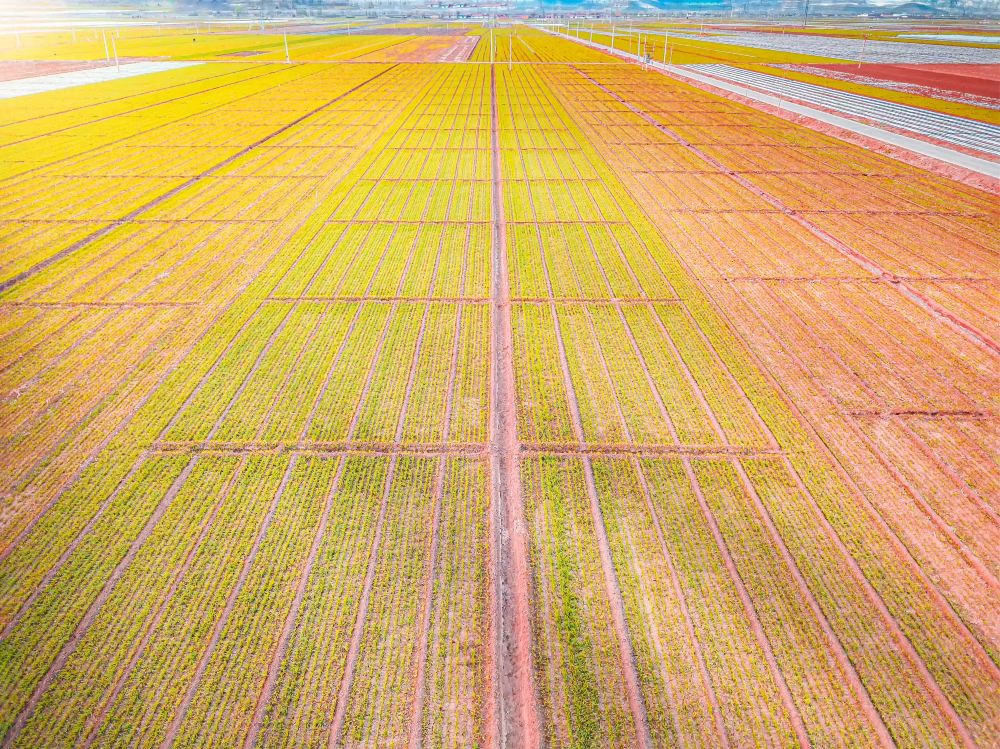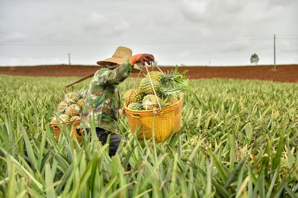 这里连片菠萝园约 35 万亩,占全国菠萝产量的三分之一强。菠萝园大地曲线优美,起伏舒缓,因菠萝在不同生长时期叶片颜色变化万千,加上金黄色的果实和极具色彩感的红土地,构成了一年四季色彩斑斓的田园景观。与散落其间的村庄、巨大的白色风车群共同构成了一幅独具魅力的热带生态农业画卷。