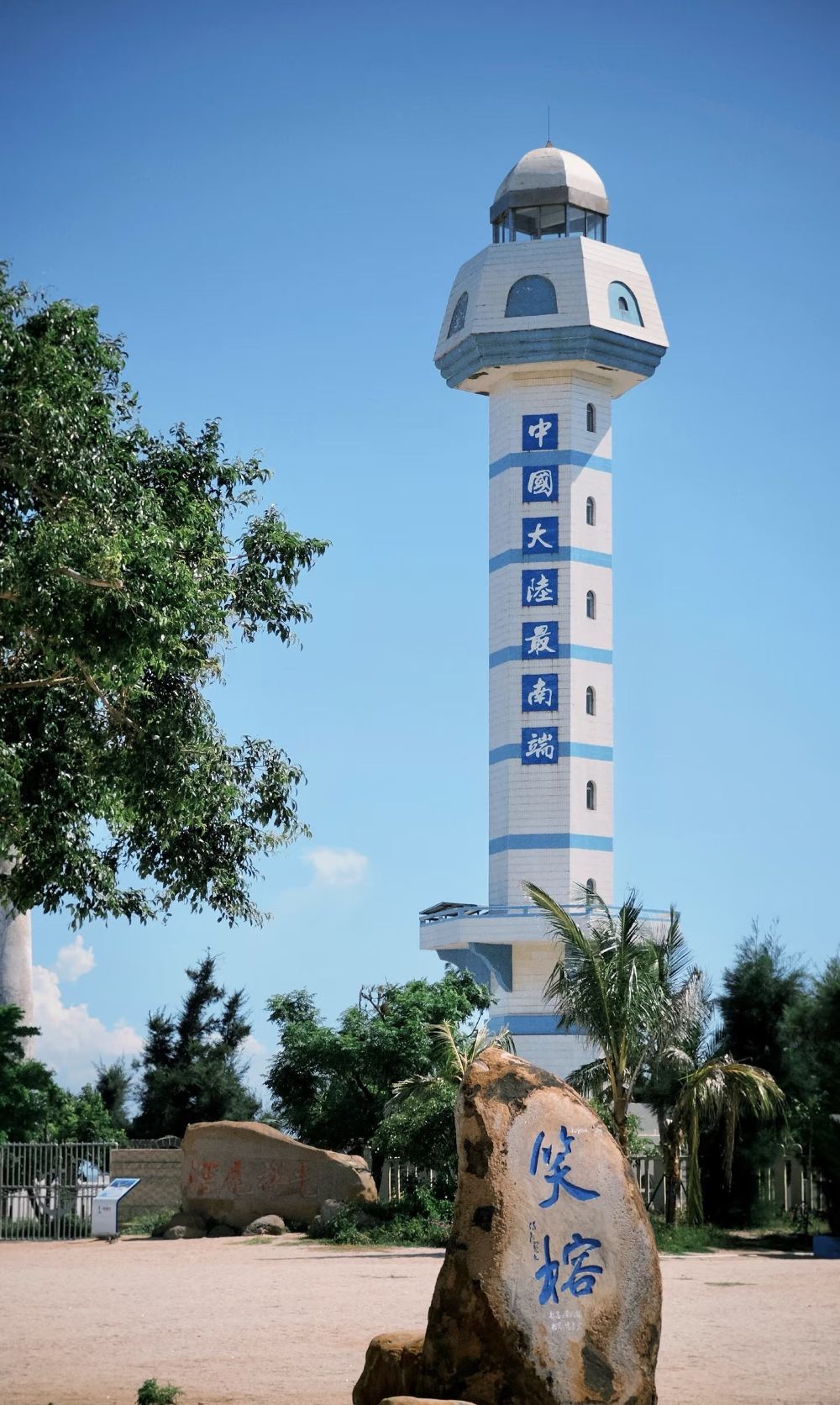 是南极村的 “顶端点”,地理坐标为东经 109°55′,北纬 20°13′,古有 “极南”“尽南” 之称。这里有一新一旧两座灯塔,新灯塔高 36 米,是琼州海峡和北部的航标灯塔,也是中国大陆南端的标志性建筑。