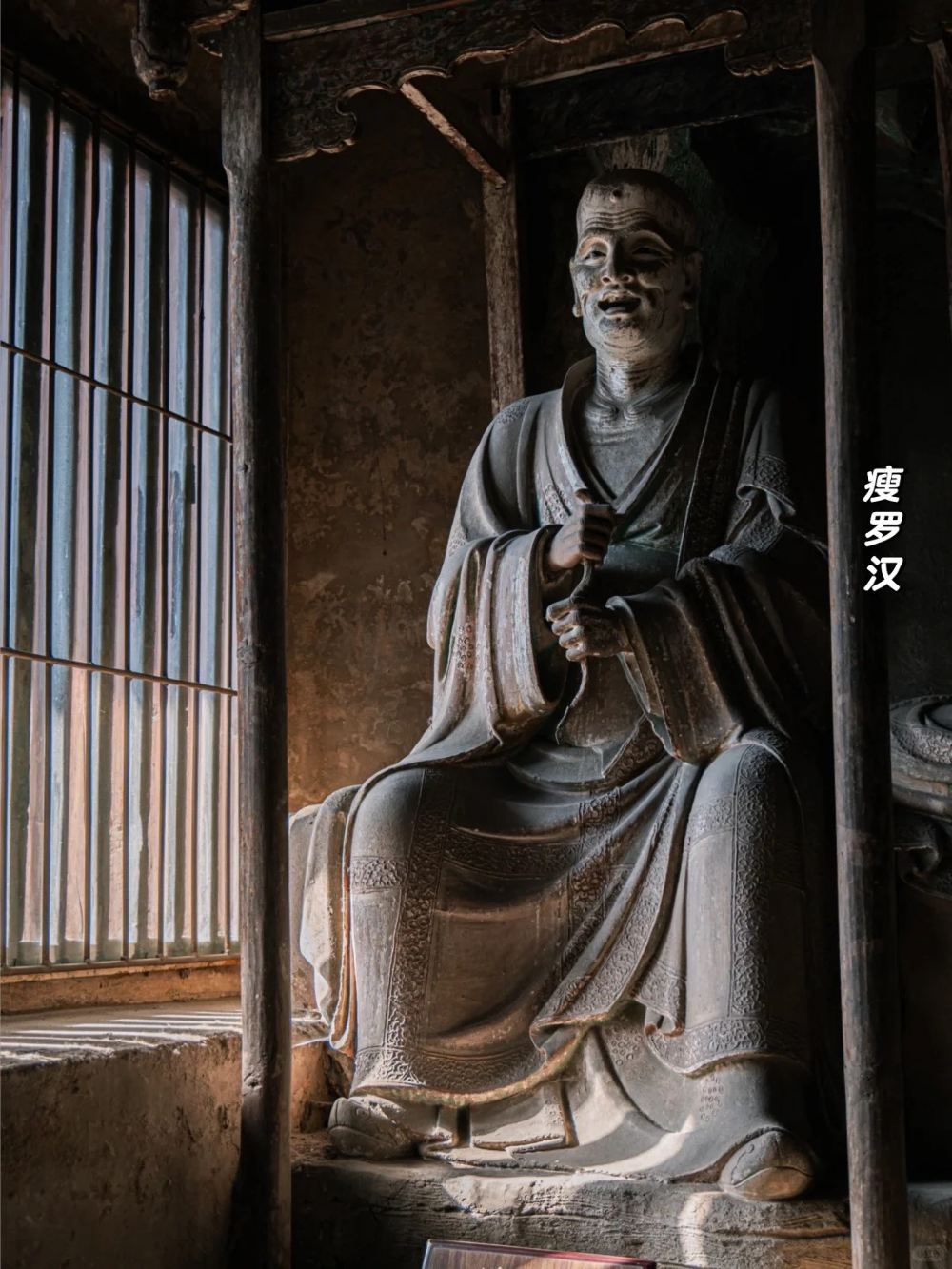 ▲ 十八罗汉为寺内现存古老的彩塑(近千年历史),每尊均有独特性格:“哑罗汉” 神情凝重似欲言又止,“笑罗汉” 眉眼弯弯藏着慈爱,工匠以现实人物为原型,赋予佛像喜怒哀乐的世俗情感,真正做到 “一尊一貌,一人一情”。