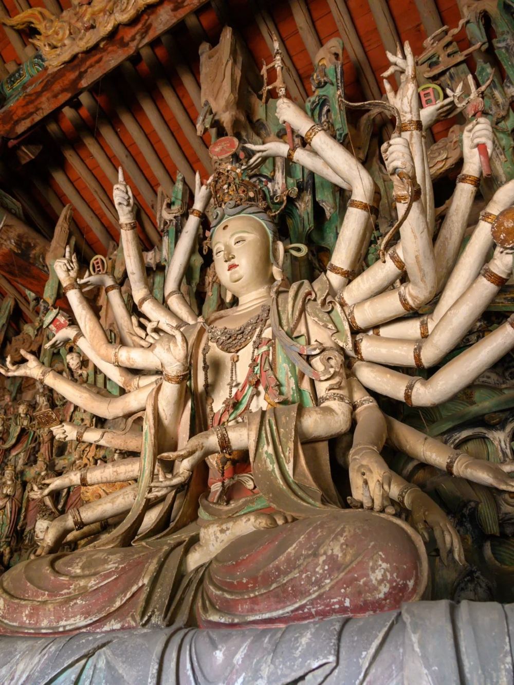 ▲ 造像的服饰、姿态、表情均取材于当时生活,从罗汉的布衣纹理到观音的坐姿,无不反映晋中地区的民俗风情与审美观念,是研究古代社会的 “活化石”;